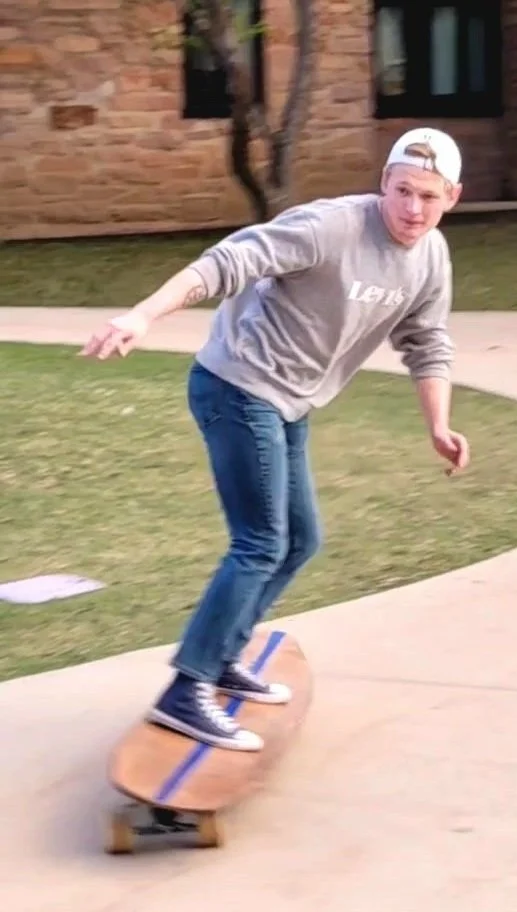 I designed and built a hybrid cruiser deck that blends vintage surfboard aesthetics with old-school skate geometry, using a combination of digital and hands-on fabrication. Starting with hard rock maple veneers and a cherry face veneer, I modeled the board in SolidWorks, laser-cut seven layered profiles, and pressed them in a custom foam mold milled via Autodesk Inventor CAM. The result is a functional, visually rich cruiser that reflects thoughtful material selection, curvature control, and craftsmanship—all aligned with the vision of a nostalgic yet practical board.